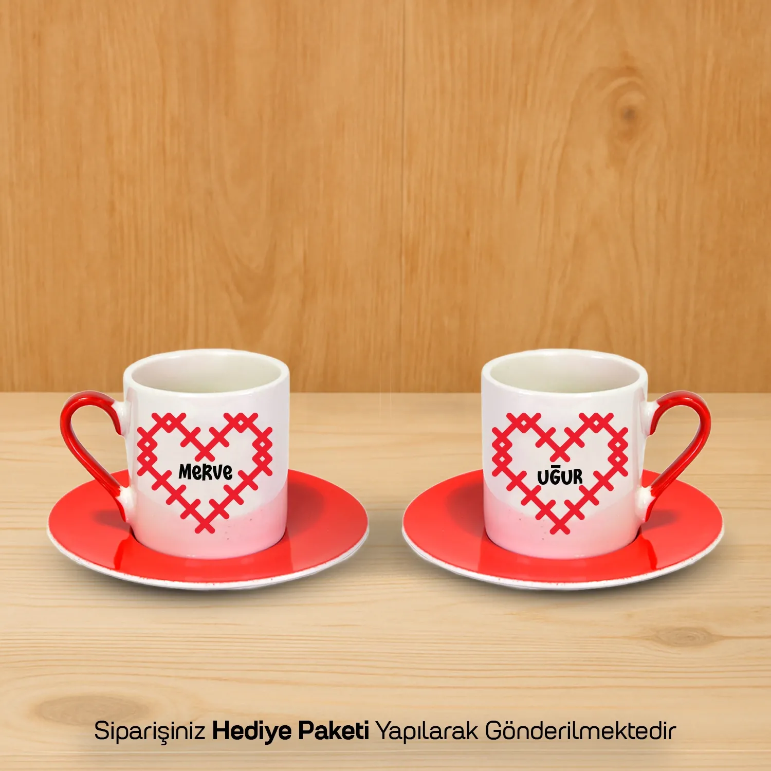 Sevdiğiniz kişiye özel ve unutulmaz bir hediye arıyorsanız bu şık set tam size göre! 2’li kırmızı kalpli kahve fincanı seti, üzerine isim yazılabilen tasarımı sayesinde romantik bir anlam taşıyor. Sevgilinizle birlikte kahve keyfinizi daha özel kılarken, yanında gelen çikolata hediyesi ile sürprizinizi tatlandırıyor.