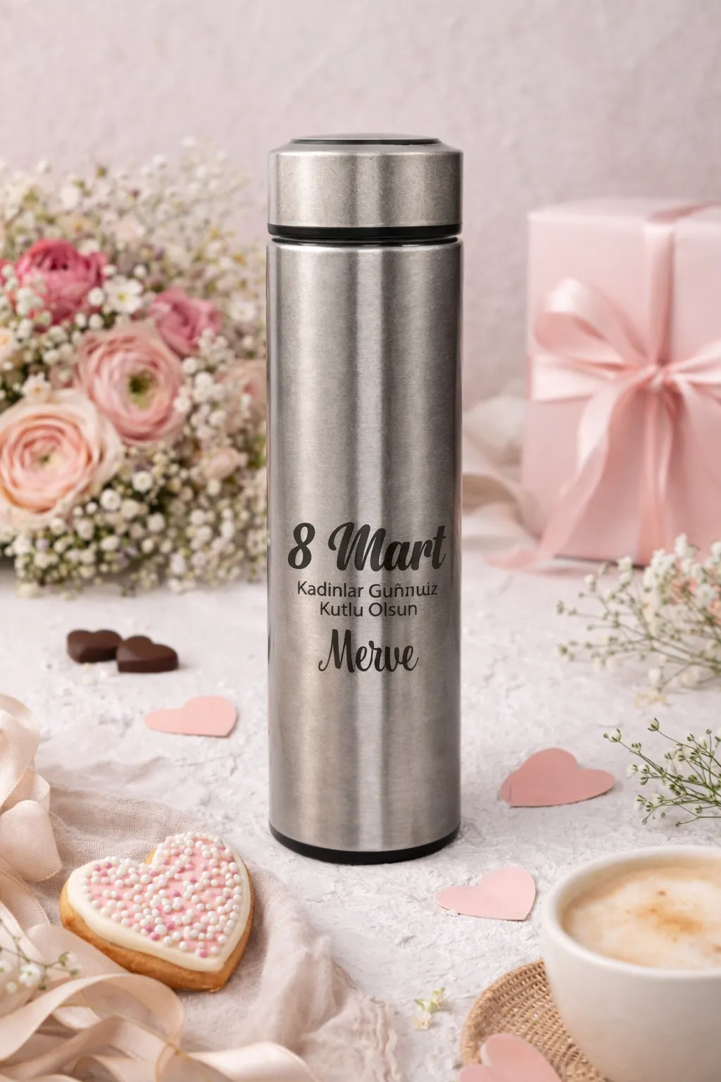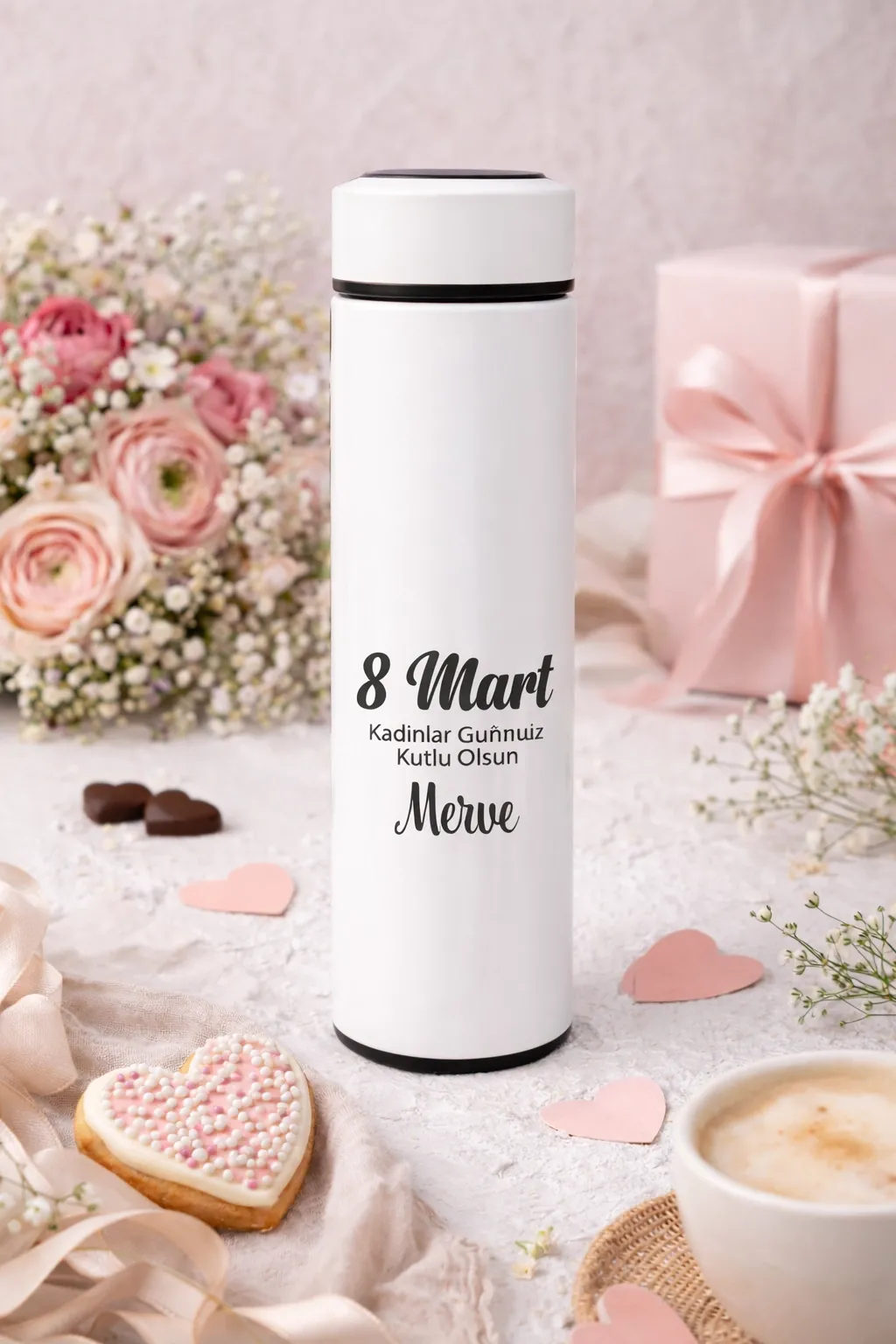8 Mart Kadınlar Günü Kişiye Özel İsimli Çelik Termos
