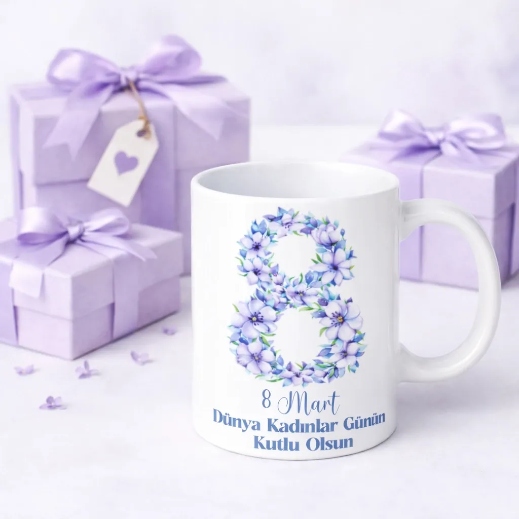 Hanibana markasının 8 Mart Lila Çiçekli Hediye Kupa'sı, özel günler için mükemmel bir seçenek. ? # Kişiye Özel Ürünler