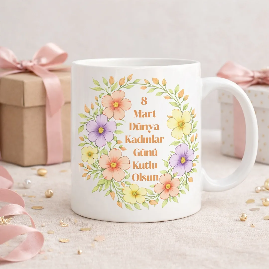 8 Mart'a özel tasarlanmış, kişiye özel hediye kupası. Her kadının sevgiyle hatırlayacağı bir armağan.
