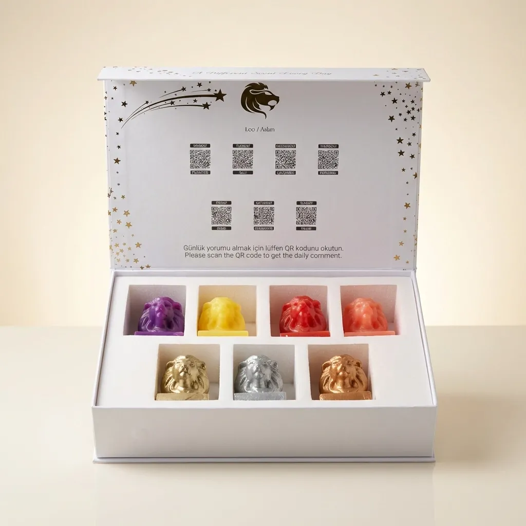Aslan burcuna özel tasarlanan mum seti ile sevdiklerinize dikkat çekici ve anlamlı bir hediye sunun. 7 adet mum ve burç yorum paketi ile şık bir deneyim yaşayın.