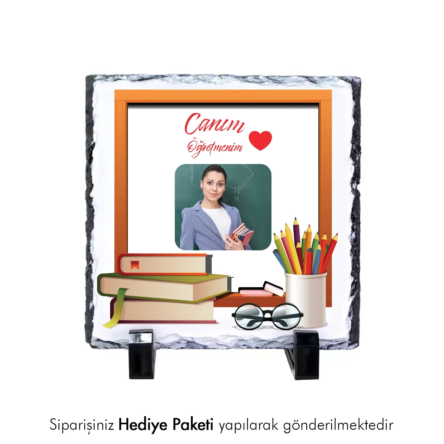 Canım Öğretmenim Temalı Kişiye Fotoğraflı Doğal Taş