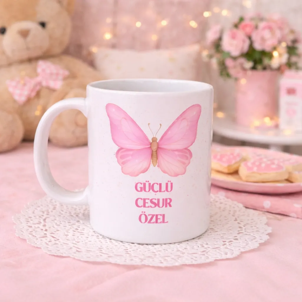 Hanibana Cesur Kalp – Motivasyon Mesajlı Kelebek Kupa, özel günler için mükemmel bir Kadınlar Günü hediyesidir. ?