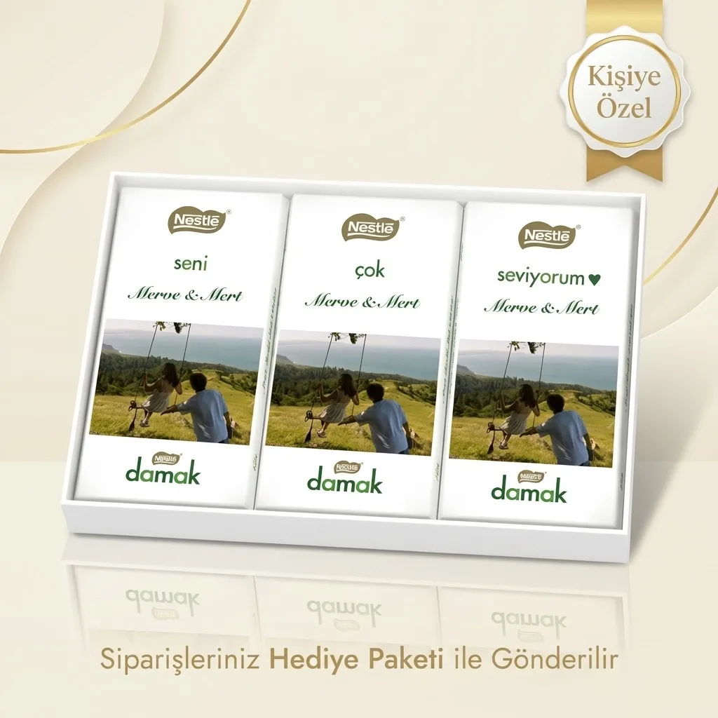 Kişiye Özel Nestlé Damak Antep Fıstıklı Sütlü Çikolata Hediye Paketi