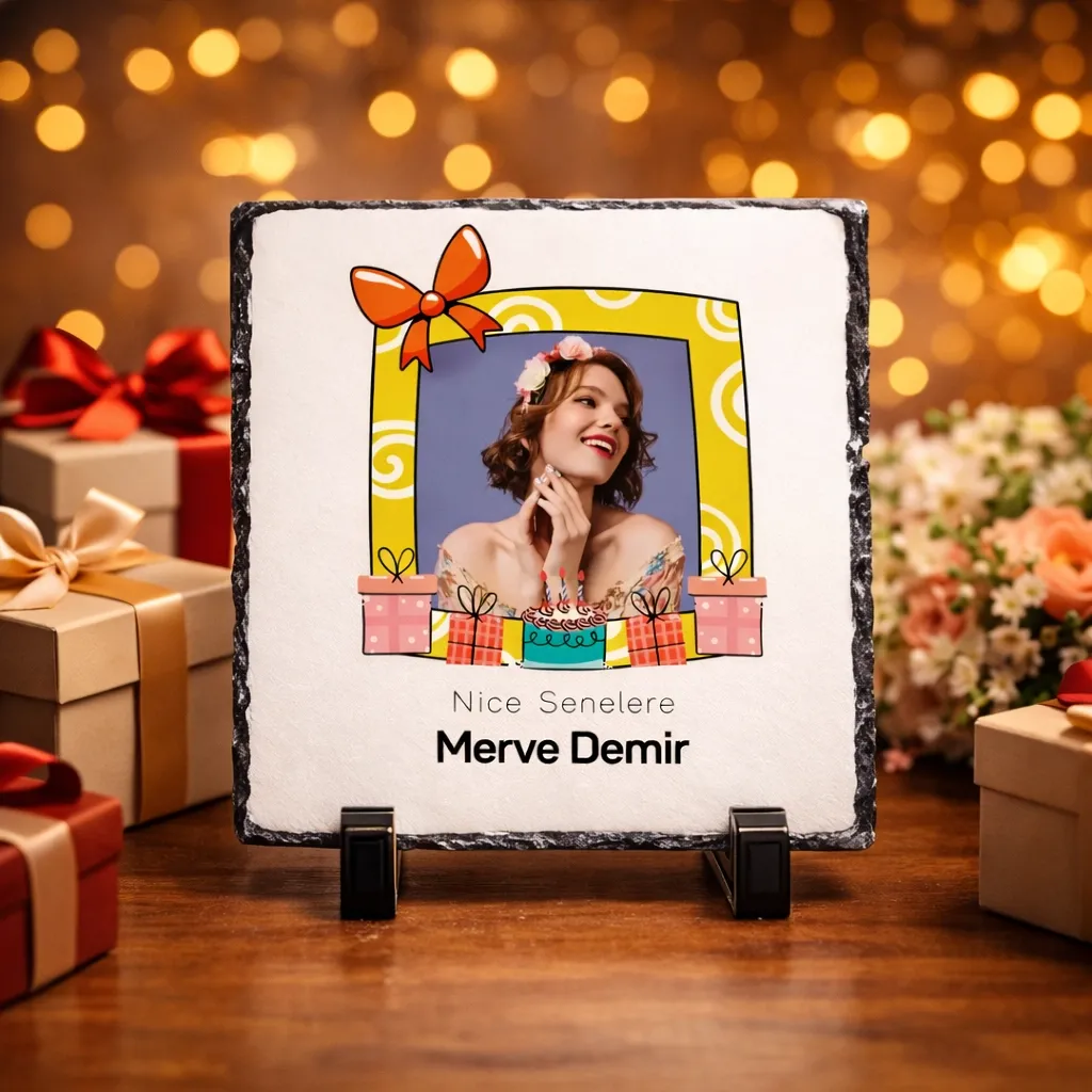 Doğum Gününe Özel Fotoğraf ve İsim Baskılı Doğal Taş
