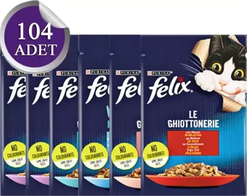 Felix Karışık Yaş Kedi Maması, kedinizin damak zevkine hitap eden birbirinden lezzetli karışık aromalarla hazırlanmıştır. 104 adet 85 gramlık porsiyonlardan oluşan bu set, kedinize her öğünde taze ve dengeli bir beslenme sunar. Yüksek kaliteli et ve balık içerikleriyle hazırlanmış özel formülü sayesinde yetişkin kedinizin günlük protein, vitamin ve mineral ihtiyacını karşılar.