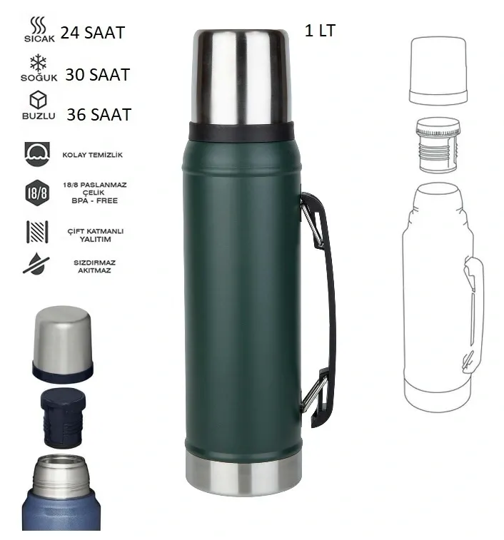 Globox Termos 1000ml Yeşil, sıcak ve soğuk içeceklerinizi uzun süre ideal sıcaklıkta tutan dayanıklı ve şık bir termos.