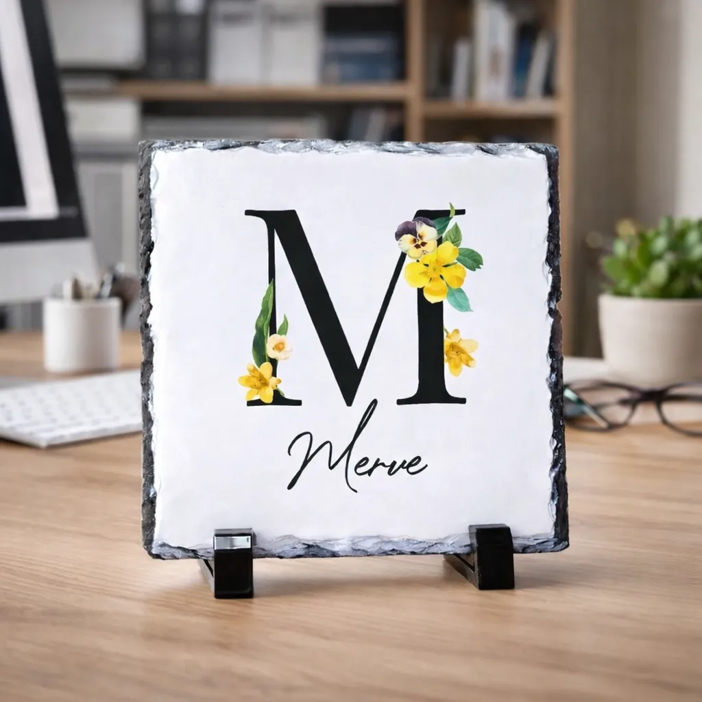 Harf Tasarımlı Kişiye Özel Baskılı Kare Doğal Taş