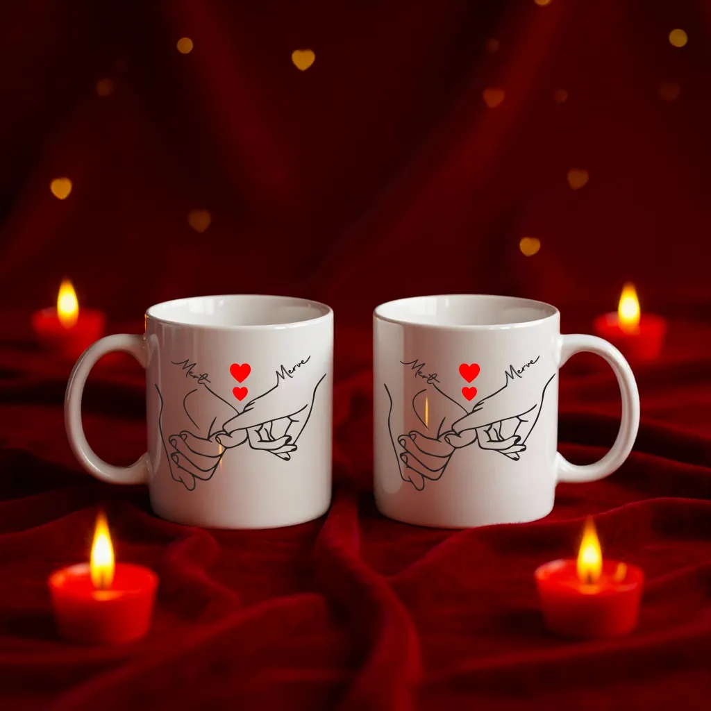 Heartline Love Temalı İsimli 2'li Kupa