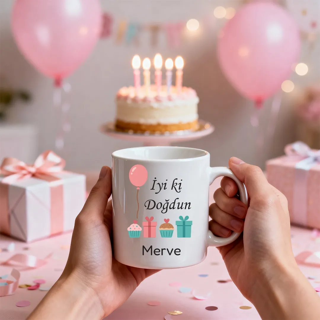 İyi ki Doğdun Temalı Kişiye Özel İsimli Kupa Bardak