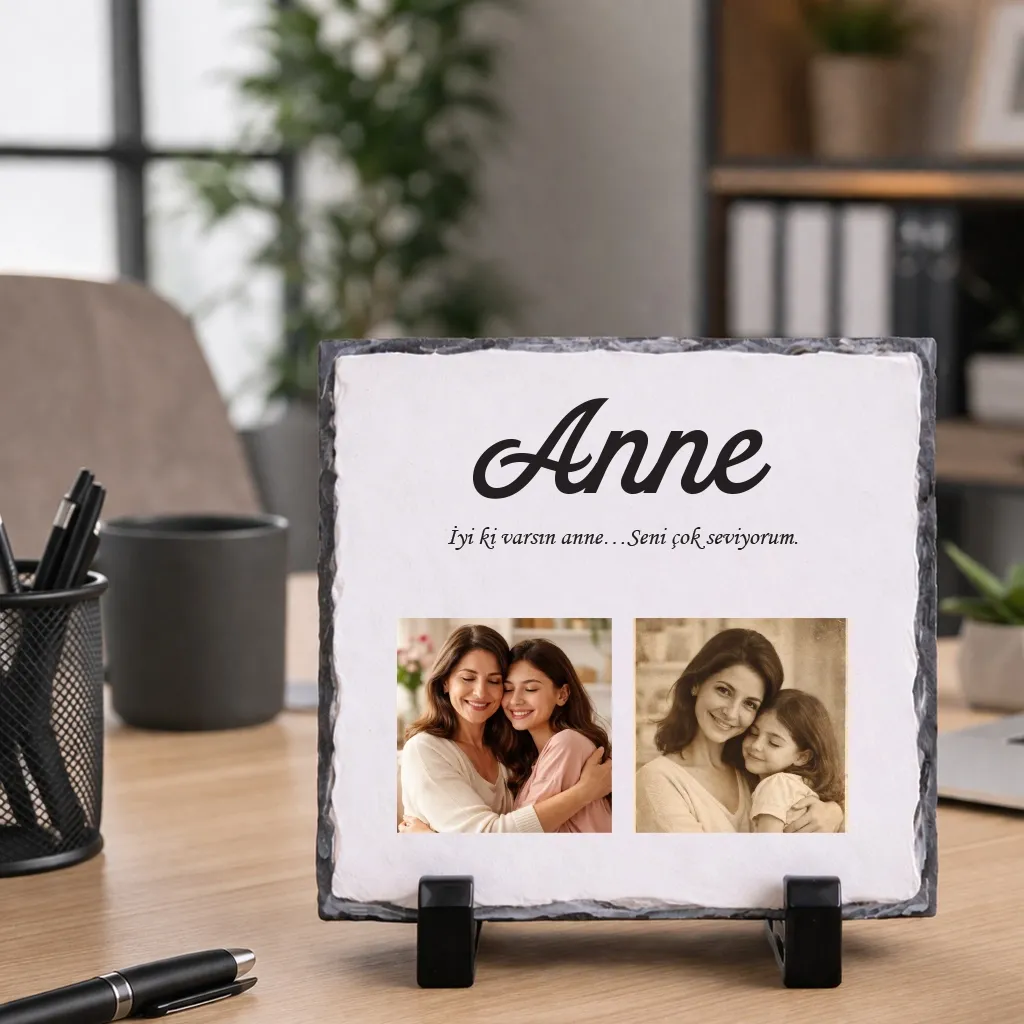 “İyi ki varsın anne” mesajıyla hazırlanan bu kişiye özel fotoğraflı doğal taş, en güzel anılarınızı ölümsüzleştirir.