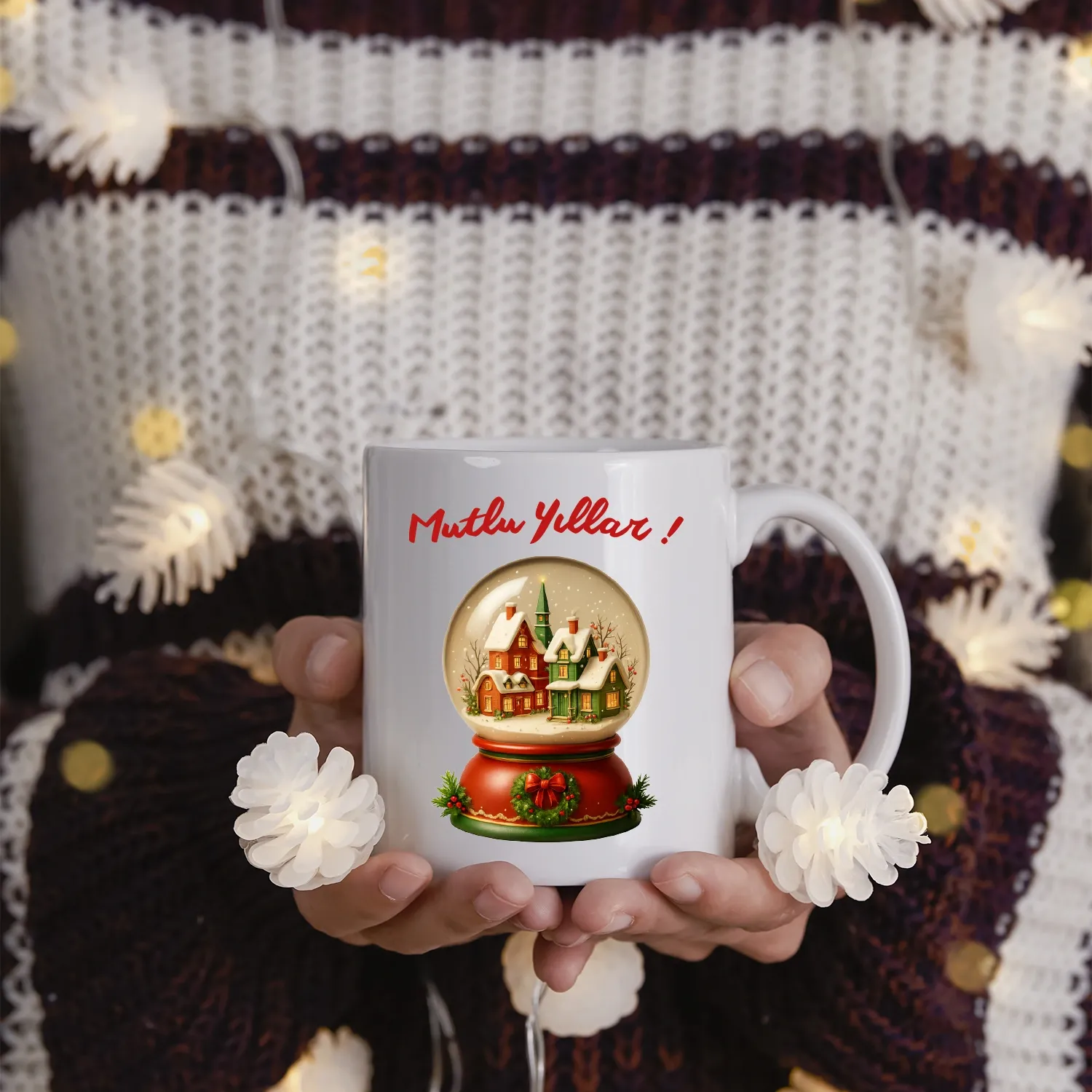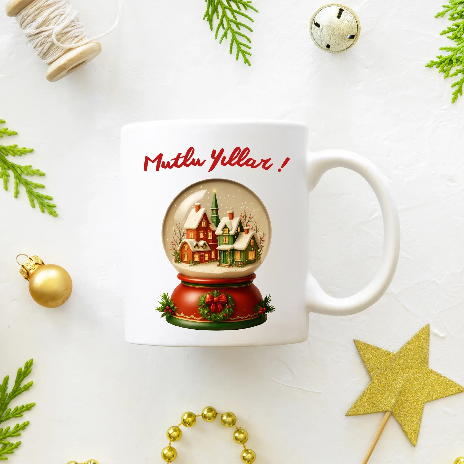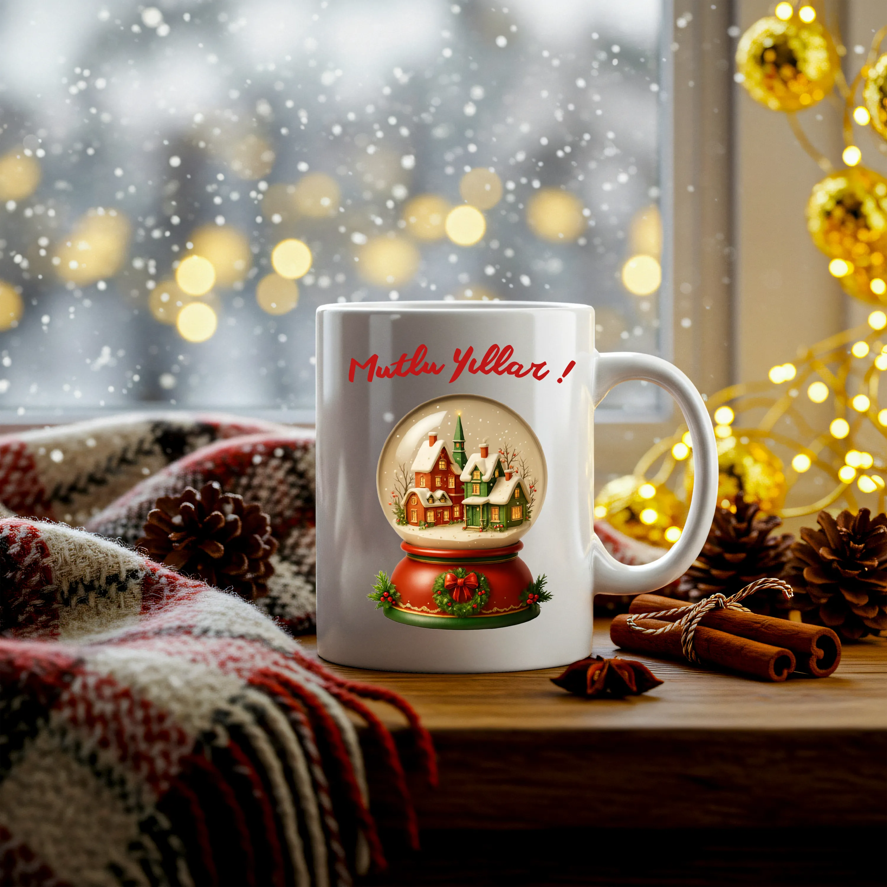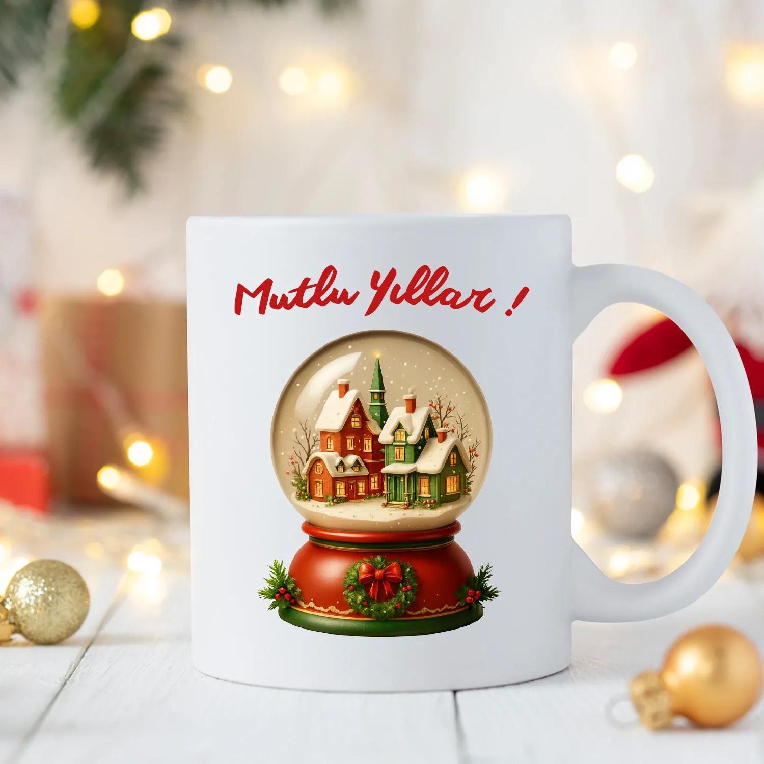 Kar Küresi Mutlu Yıllar Kupası, yılbaşı ruhunu yansıtan şık tasarımıyla sıcak ve mutlu bir atmosfer yaratır.