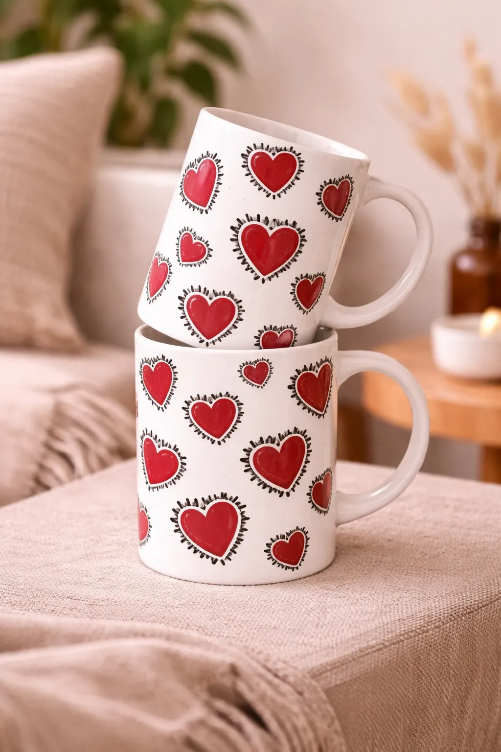 Kırmızı Kalp Desenli 2’li Kupa Seti