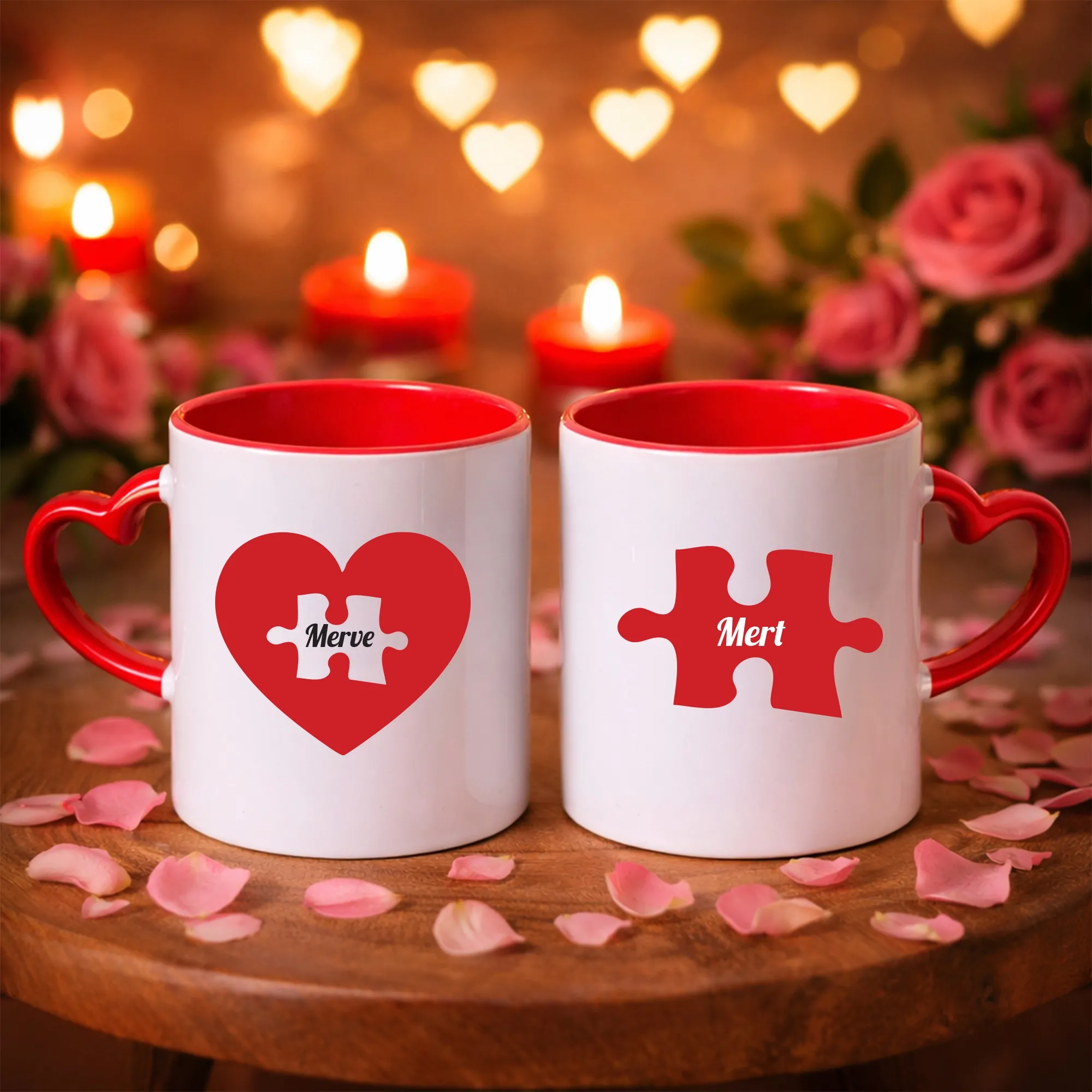 Kişiye Özel 2'li Puzzle Kalp Kupa Seti