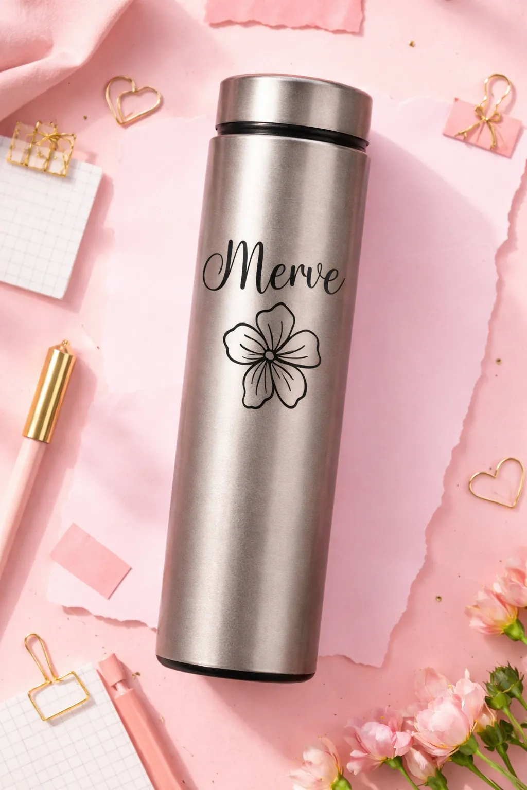 Kişiye Özel Çiçek Desenli Termos