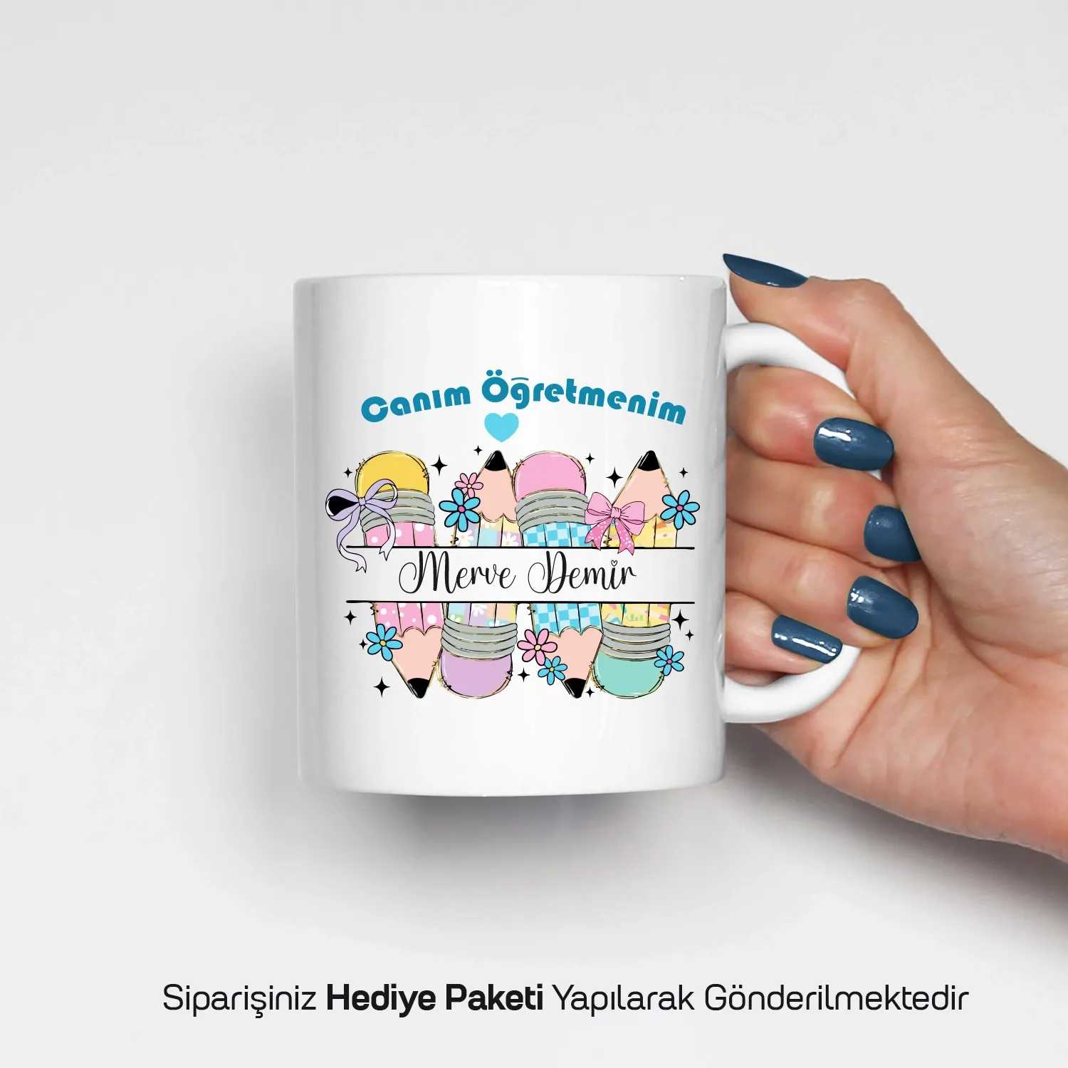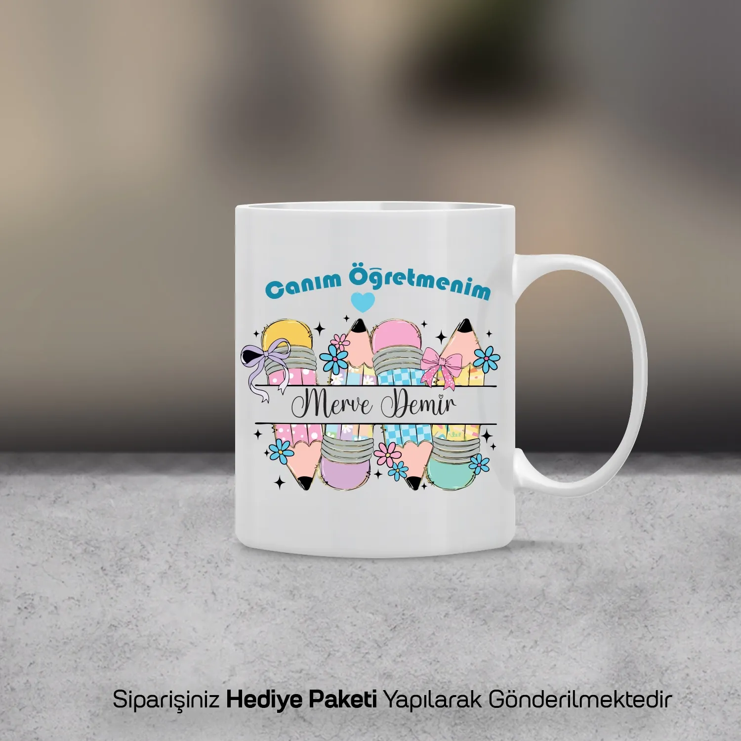 Kişiye Özel Kurdeleli Kalemler Öğretmen Kupası, öğretmenlere özel tasarımıyla öne çıkan şık bir hediye seçeneğidir.