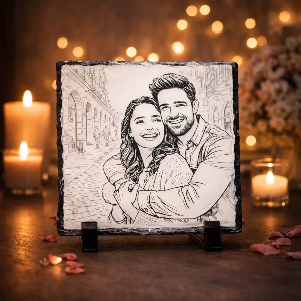Yıl Dönümüne Özel Fotoğraf İsim ve Tarih Baskılı Kare Doğal Taş