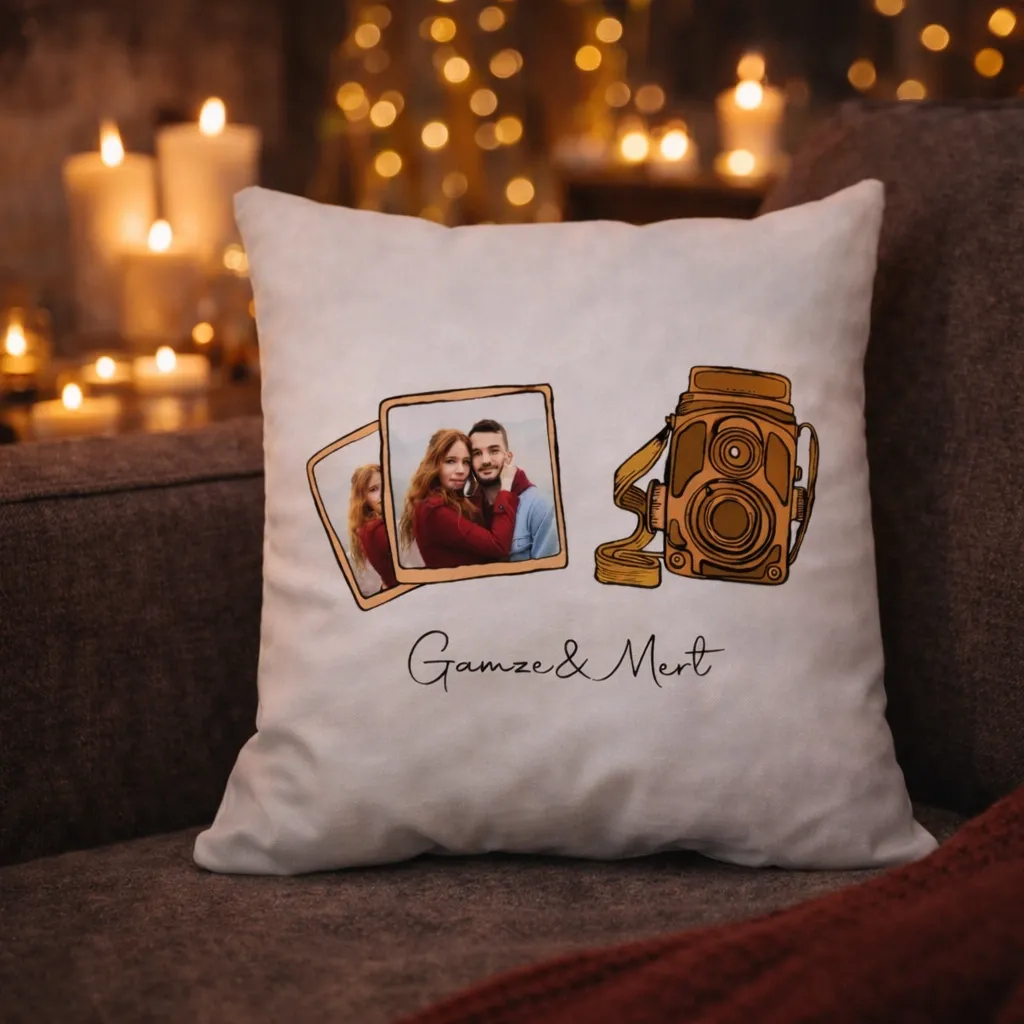 Hanibana'dan özel tasarlanmış retro fotoğraf ve isim baskılı dekoratif yastık sevgilinize unutulmaz bir hediye olacak!