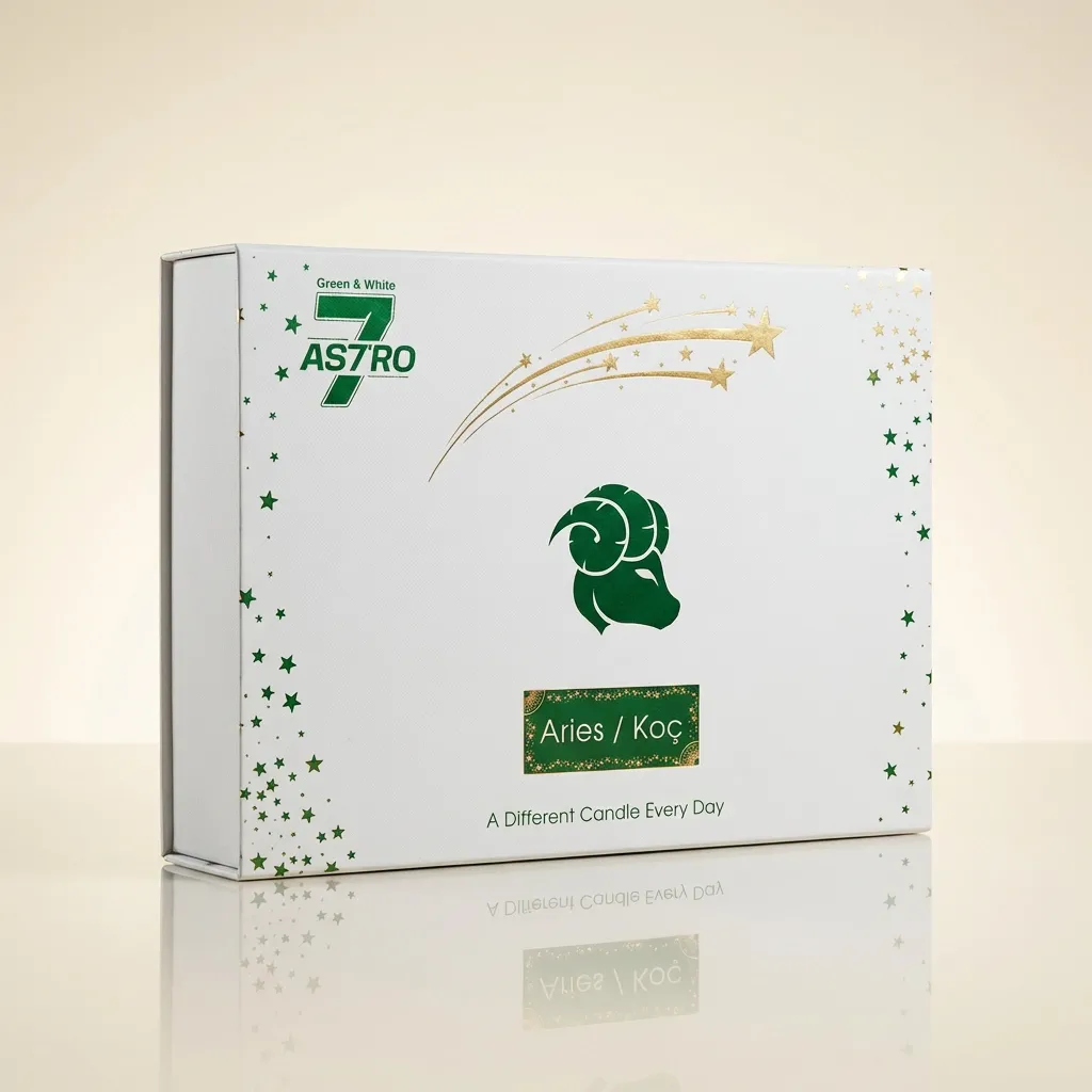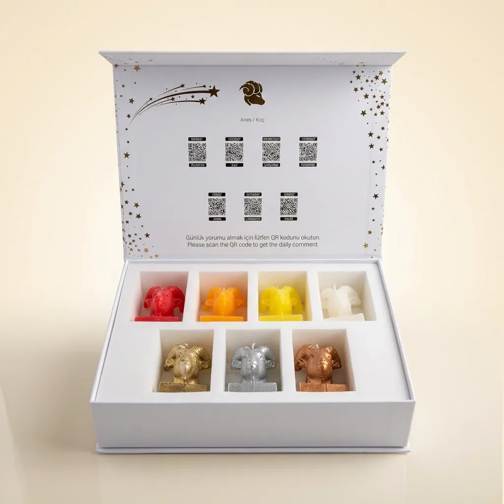 Set içerisinde 7 adet özel tasarım mum ve burç yorum paketi yer almaktadır.