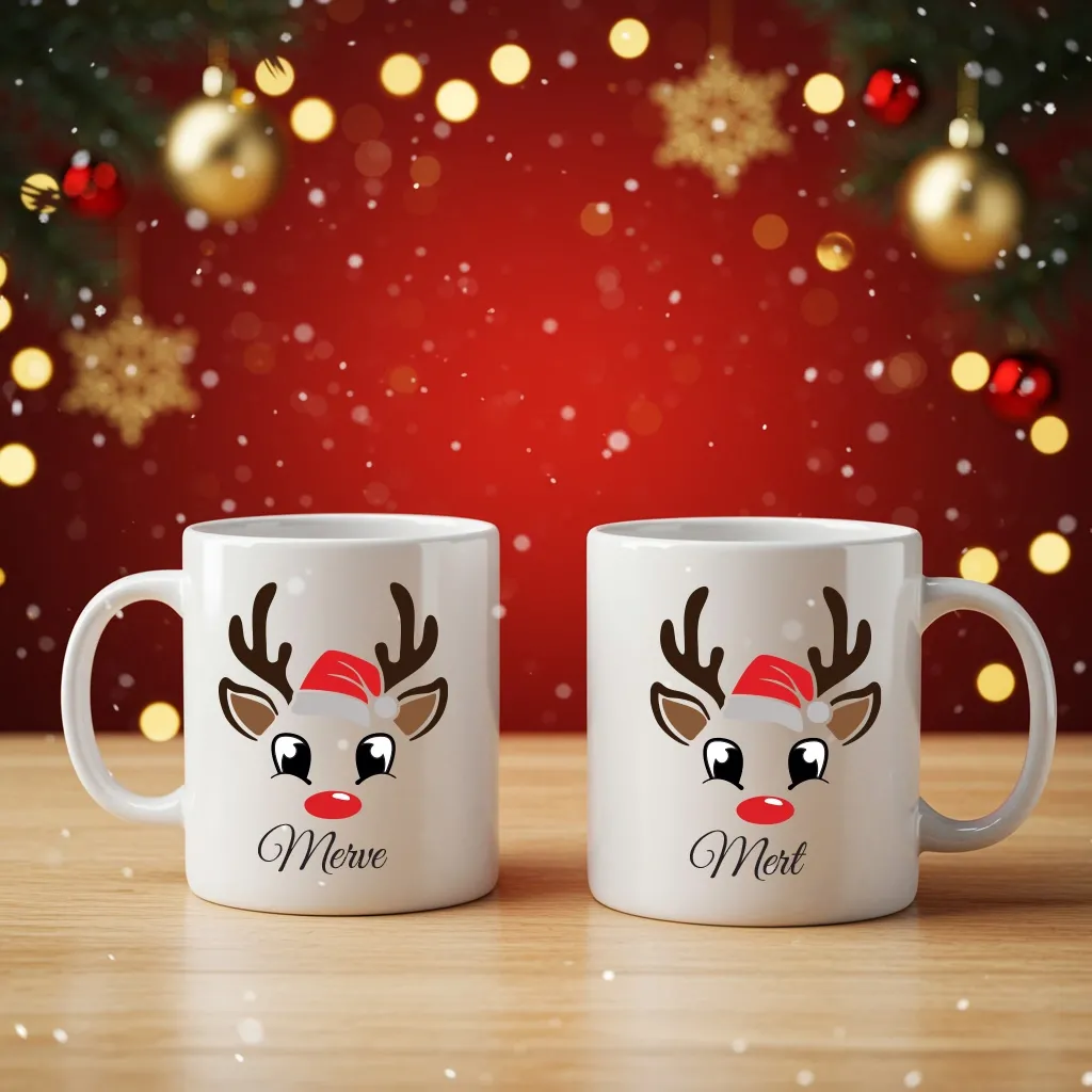 Noel Geyiği Temalı İsimli Kupa, kahve keyfinizi şenlendirecek eğlenceli ve şık bir hediye seçeneğidir.