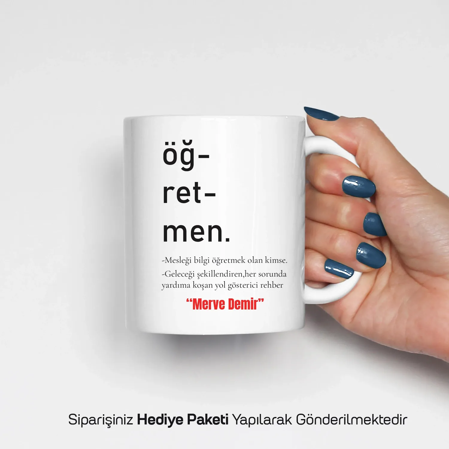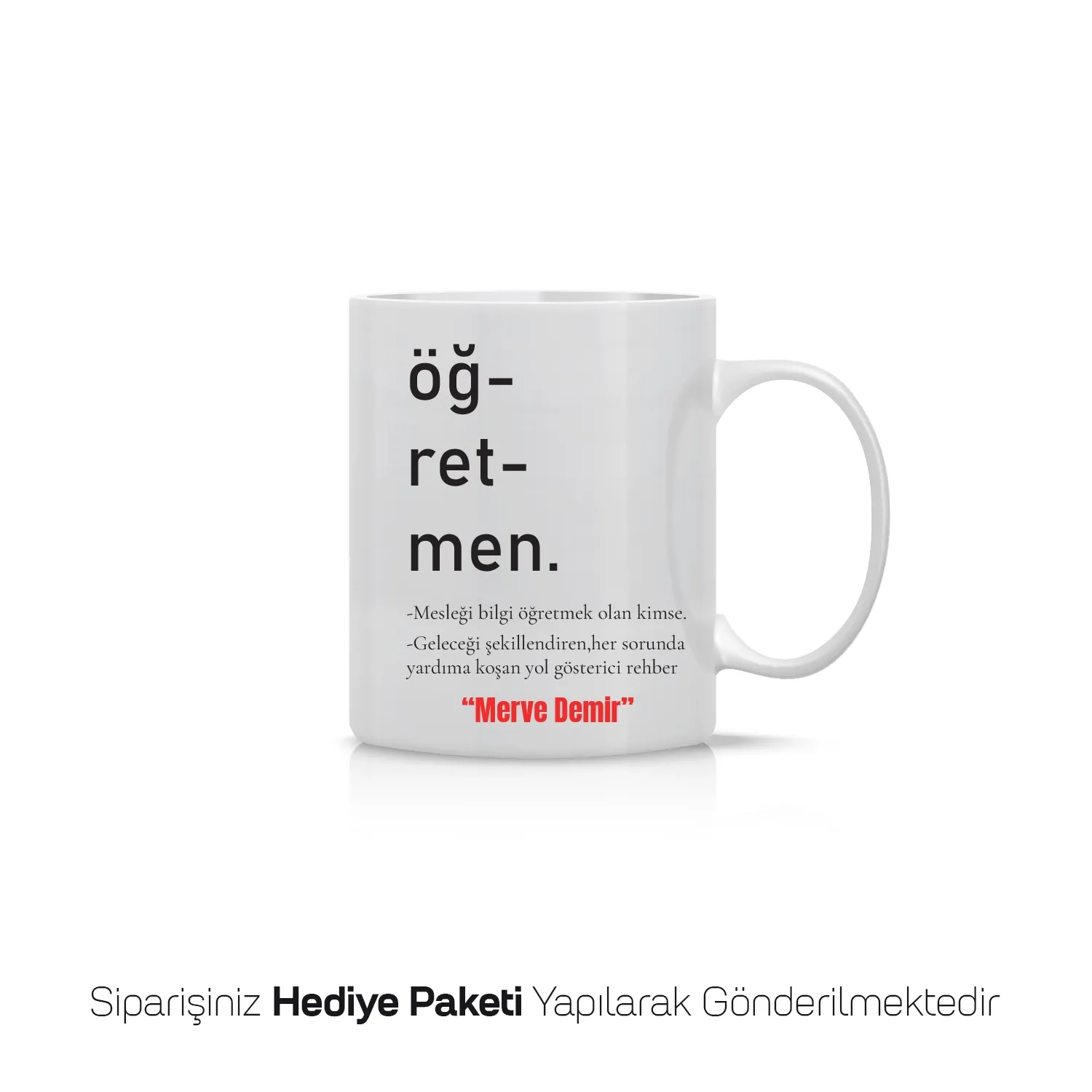 Öğretmen Kelime Anlamlı Kişiye Özel Kupa Bardak