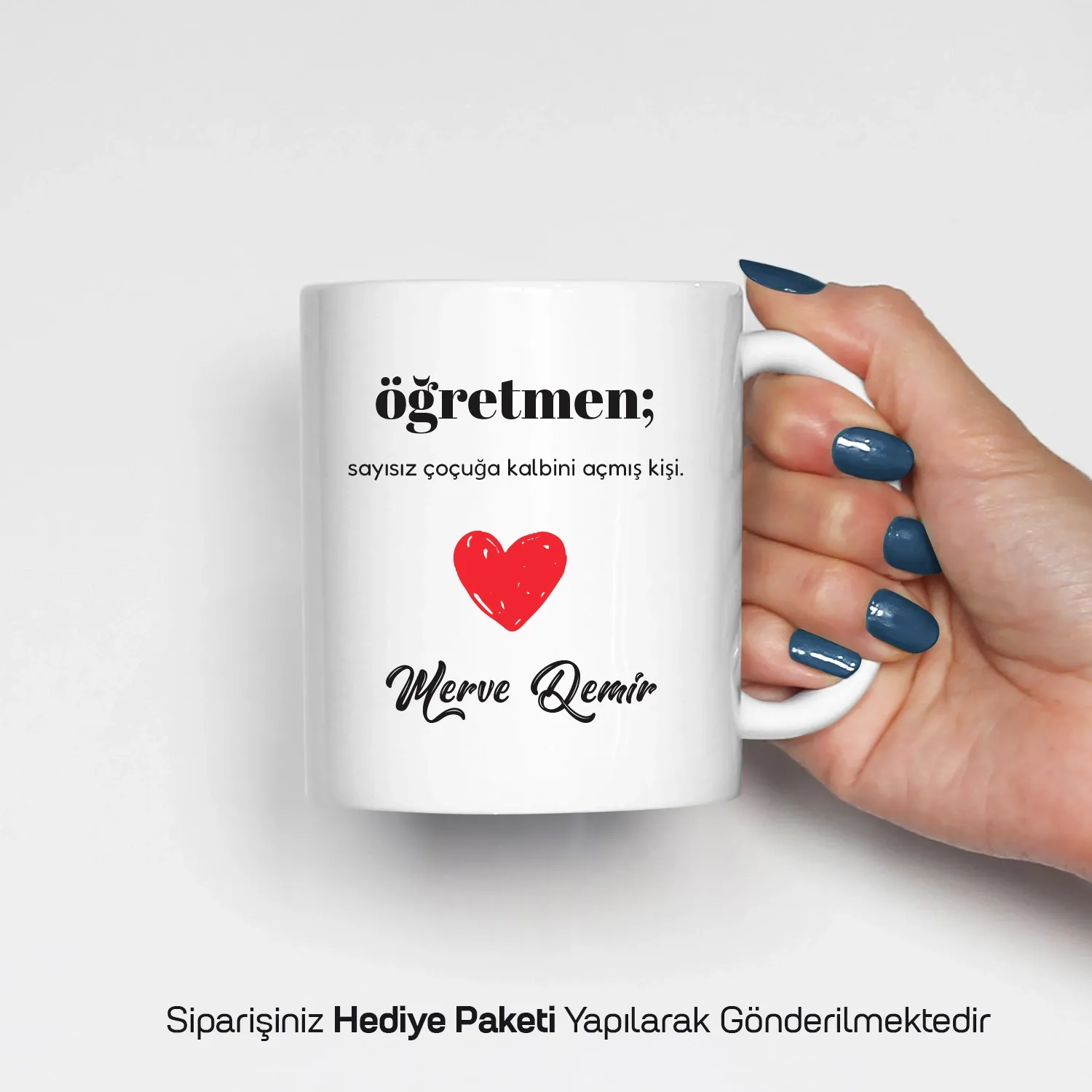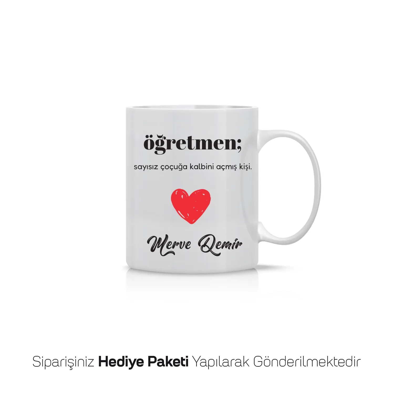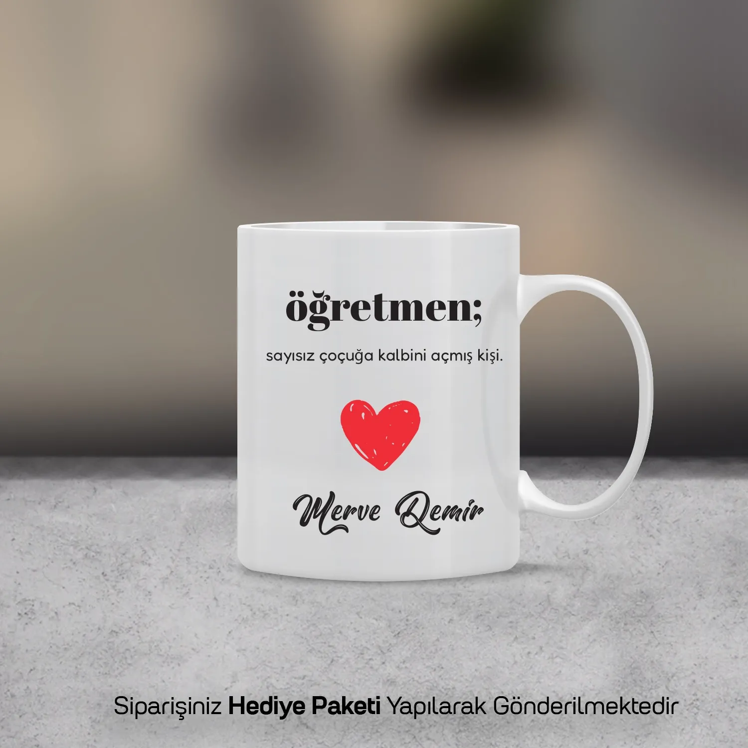 Sevgili öğretmeninize özel tasarlanmış isimli kupa bardak! Öğretmenler Günü için ideal hediye seçeneği.