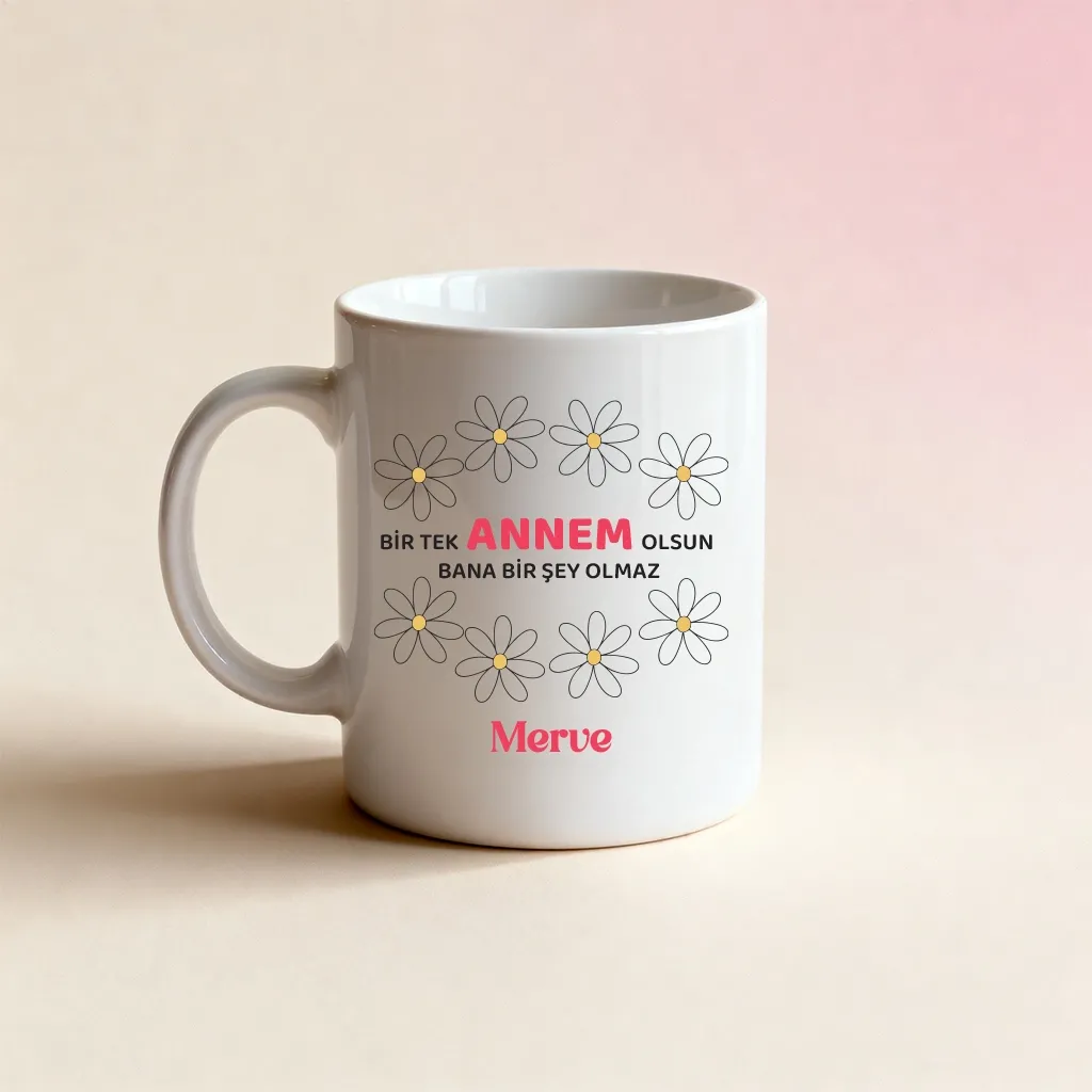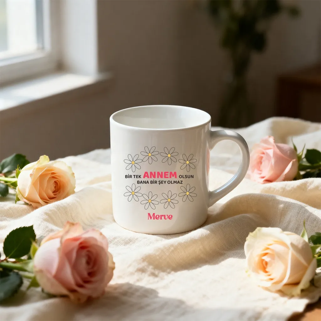 Papatya Tasarımlı Anneye Özel İsimli Kupa Bardak