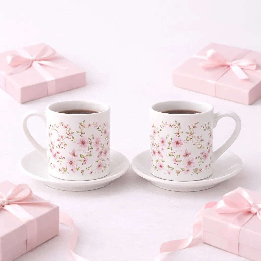 Hanibana Pembe Çiçekli 2'li Fincan Seti, Kadınlar Günü hediyesi için şık ve kullanışlı bir seçenektir. ?