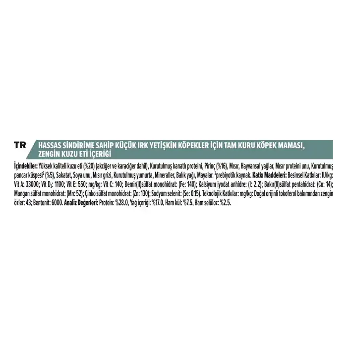 Pro Plan Hassas İçeriklerle Küçük Irk Köpekler için özel olarak formüle edilmiş Kuzu Etli Mama 3 Kg.