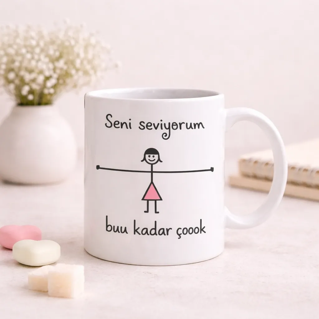 Hanibana'nın romantik çizimli Buu Kadar Aşk Kupa'sıyla sevgilinize özel anlar yaşayın. ❤️