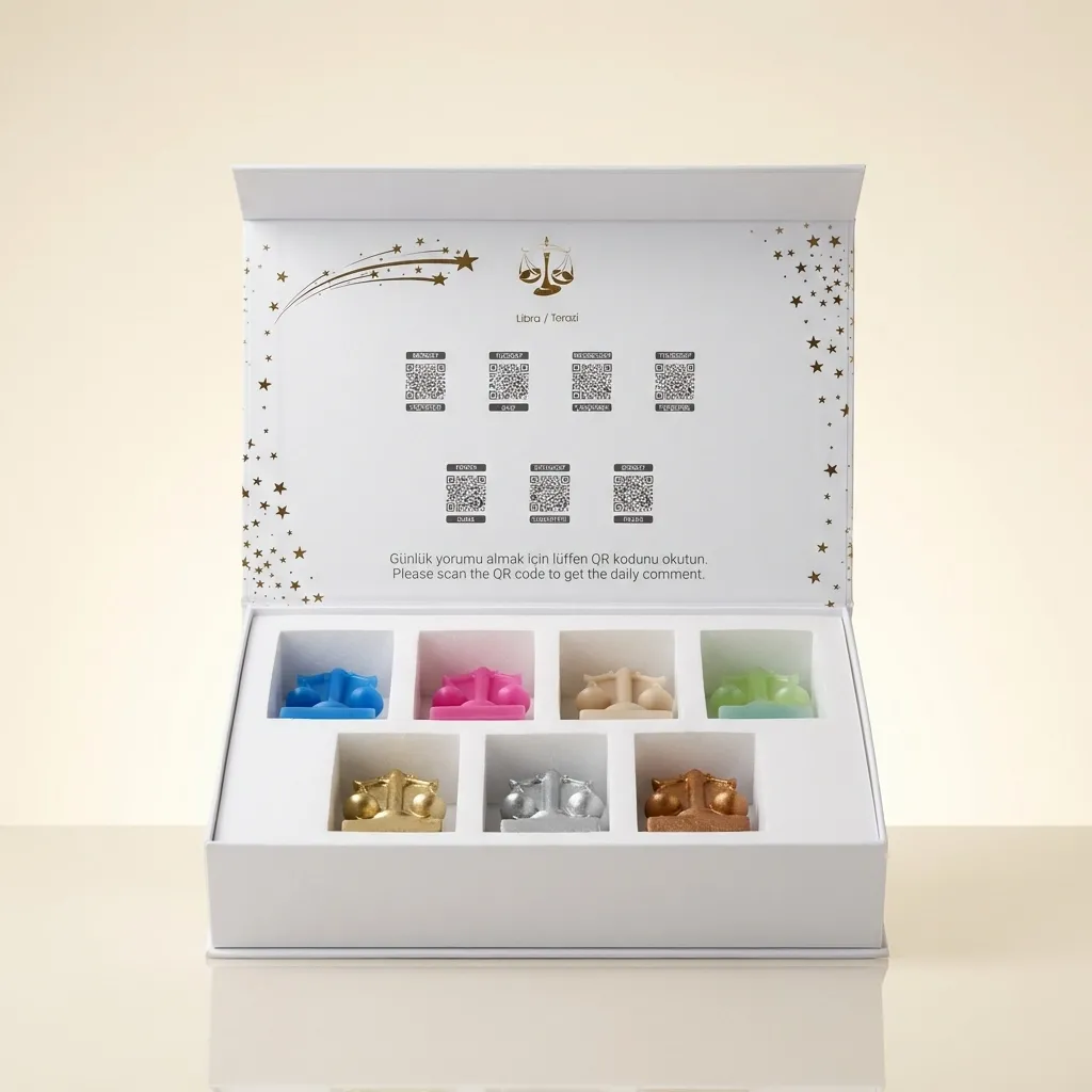 Terazi Burcu Mum Seti, Terazi burcunun dengeli, estetik ve uyumlu karakterine özel olarak hazırlanmıştır.