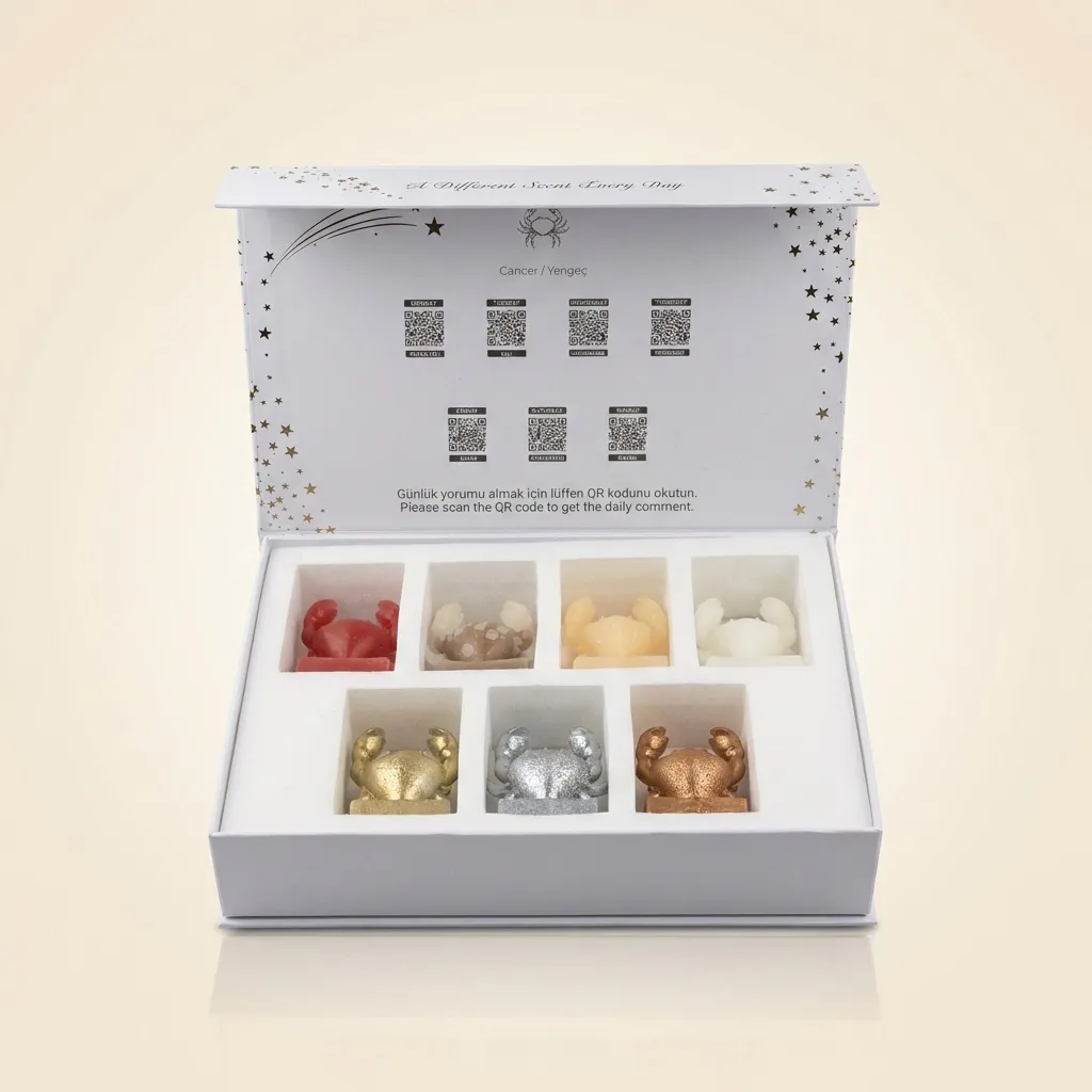 Yengeç Burcu Mum Seti, Yengeç burcunun hassas, koruyucu ve duygusal karakterine özel olarak hazırlanmıştır.