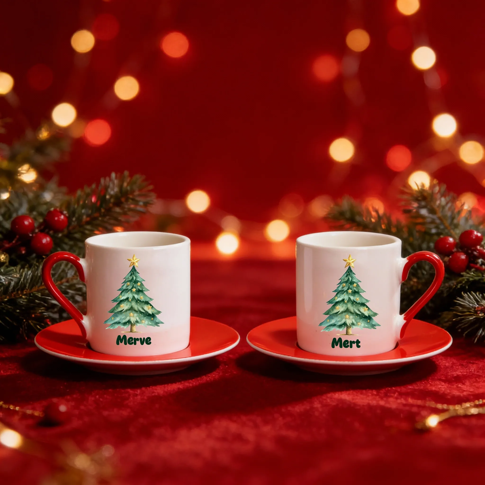 Yılbaş Ağacı Figürlü 2'lİ Fincan