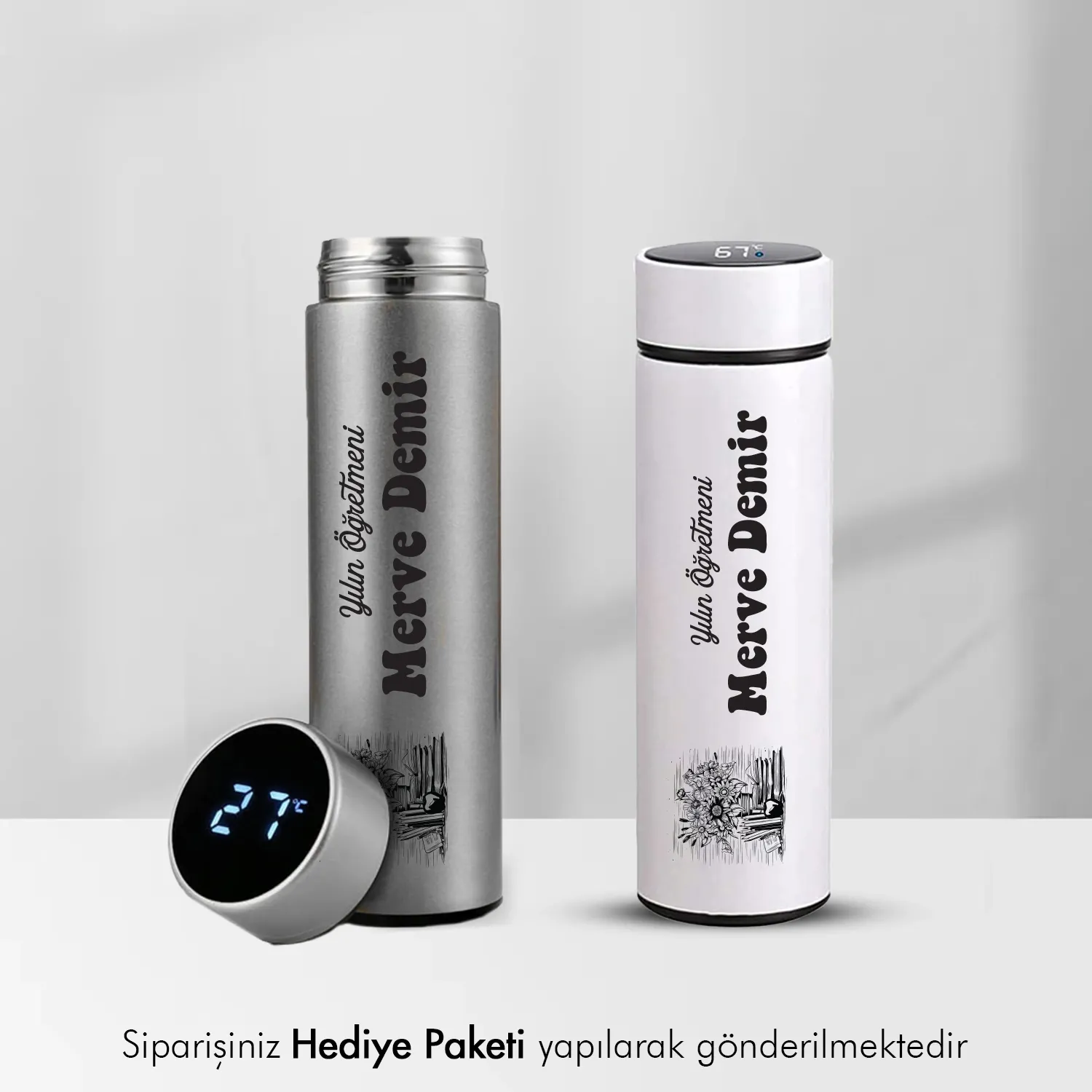 Kişisel bir hediye seçeneği olan "Yılın Öğretmeni Temalı Kişiye Özel Termos", öğretmenler için özel tasarlanmış şık ve kullanışlı bir termos seçeneğidir.
