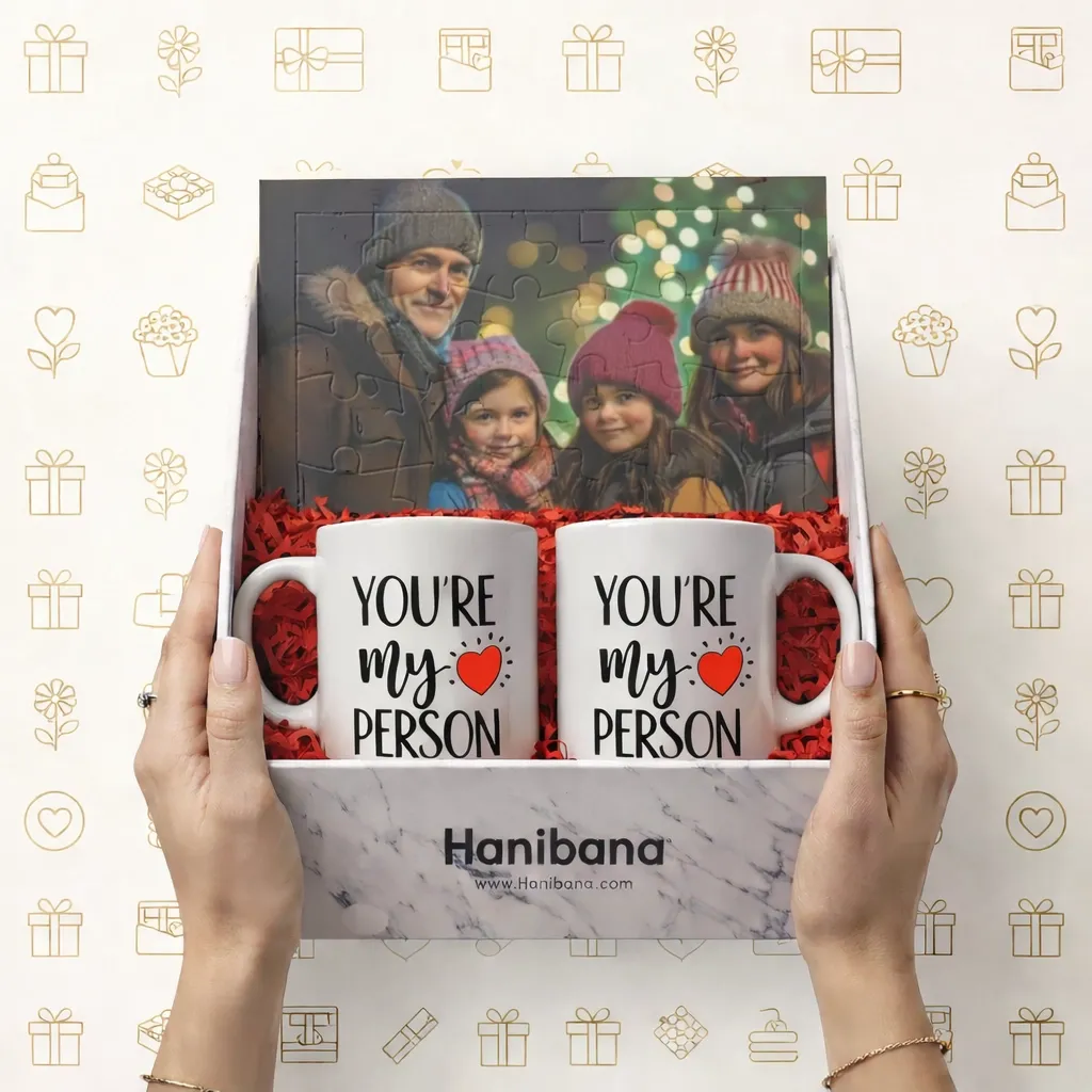 Hanibana'nın "You’re My Person" temalı Kişiye Özel A5 Puzzle & Çift Kupa Hediye Seti, duygusal bir hediye arayanlar için idealdir.